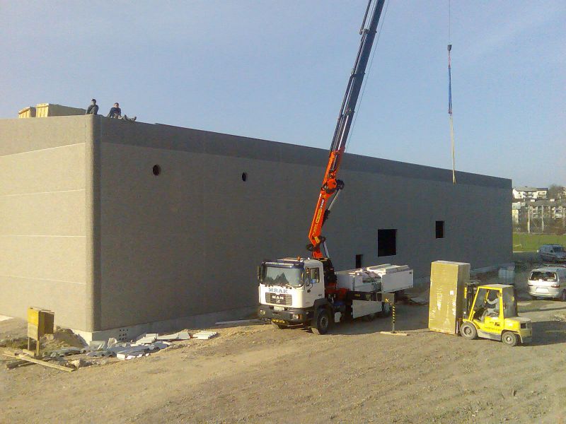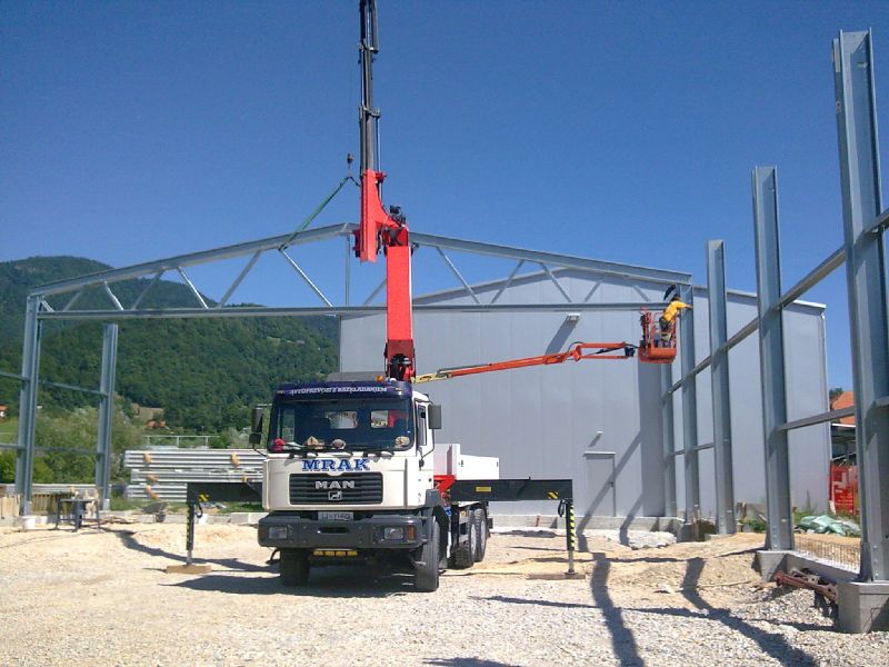pomoč z avtodvigalom pri postavitvi konstrukcij različnih materialov,